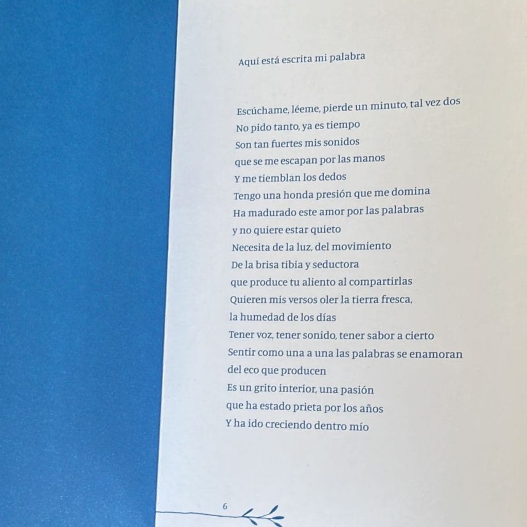 Su palabra nace con naturalidad y se eleva afirmativamente porque canta a la vida con toda su alma. ¿Que más se puede pedir? Estamos ante una voz personal, madura, fuerte y dulce a la vez, como la voz de una sonora campana que de pronto a roto su silencio.